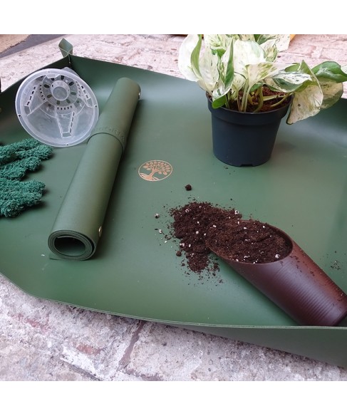 Grâce à son système de pressions, le tapis se transforme rapidement en plateau à rebords, idéal pour contenir le terreau lors de vos plantations ou rempotages. Ultra-léger et facile à plier, il se glisse partout : dans un tiroir, un placard ou même un sac pour vous accompagner lors de vos activités de jardinage.