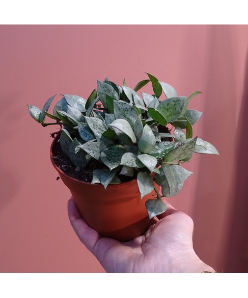 Offrez à votre intérieur une touche d’élégance naturelle avec la Hoya krohniana ‘Silver Eskimo’, une variété recherchée pour son feuillage unique et ses reflets argentés. Ses petites feuilles en forme de cœur, délicatement marbrées de taches argentées, en font une plante d’exception aussi décorative que facile à vivre.