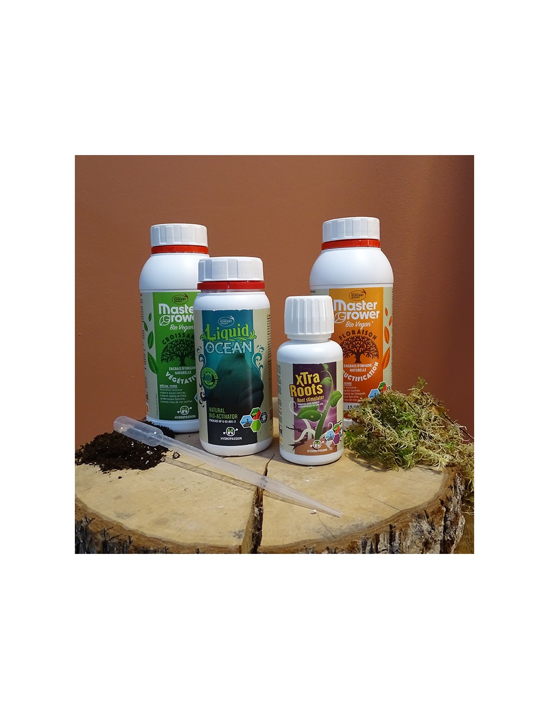 Ce lot d’engrais Hydropassion réunit l’essentiel pour accompagner les plantes à toutes les étapes de leur développement. Il combine des engrais liquides performants, bio et vegan, adaptés aussi bien à la croissance qu’à la floraison, ainsi qu’un stimulateur racinaire pour des plantes plus fortes et vigoureuses.