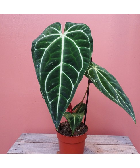 L’Anthurium Regale est une plante d’exception, prisée pour son feuillage majestueux et sa présence spectaculaire. Ses larges feuilles en forme de cœur, d’un vert profond et velouté, sont traversées de nervures argentées très marquées, offrant un contraste saisissant et une allure résolument luxueuse.