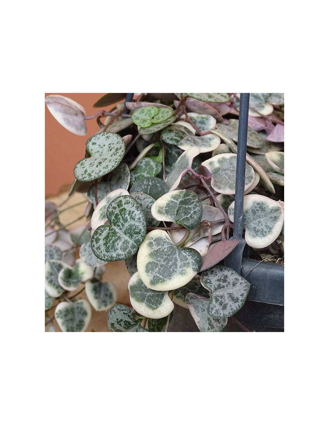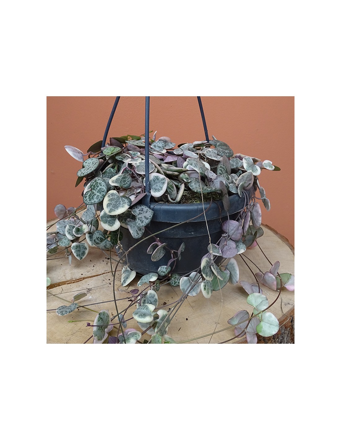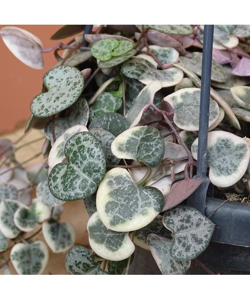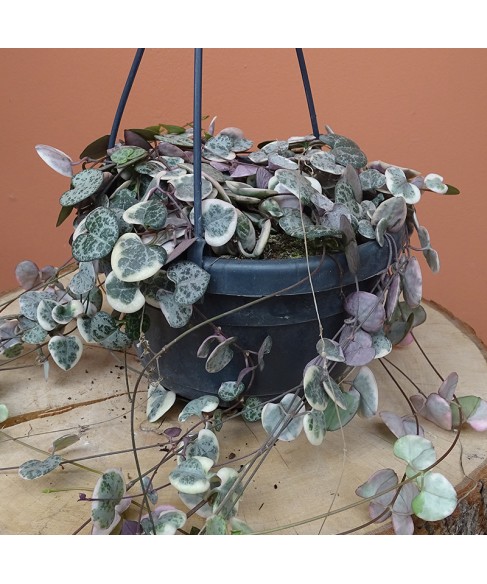 La Ceropegia woodii, aussi appelée Chaîne des cœurs, est une plante retombante au charme irrésistible. Ses longues tiges fines portent de délicates feuilles en forme de cœur, vert argenté sur le dessus et pourpre au revers. Élégante et graphique, elle est parfaite pour apporter une touche bohème et poétique à votre intérieur.