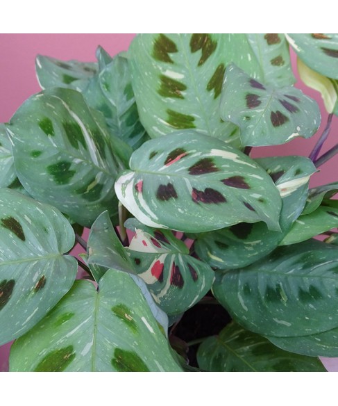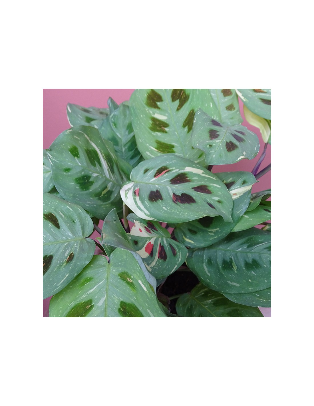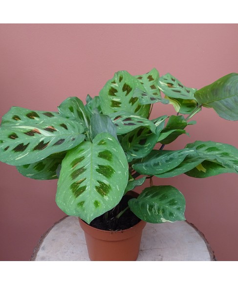 La Maranta kerchoveana variegata est une plante d’intérieur décorative et apaisante, reconnue pour son feuillage unique et délicatement panaché. Ses feuilles ovales présentent un subtil mélange de vert clair, de crème et de vert plus foncé, ponctué de motifs caractéristiques qui en font une plante élégante et pleine de douceur.