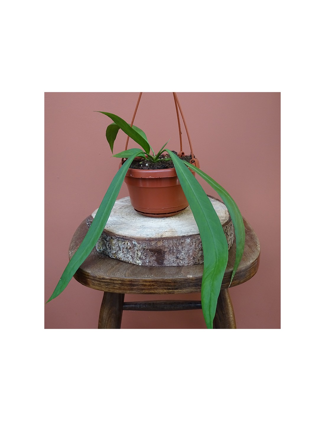 Original et graphique, l’Anthurium vittarifolium séduit par son port retombant et ses longues feuilles rubanées pouvant atteindre une longueur impressionnante. Cultivé en suspension, il crée un effet cascade tropicale idéal pour sublimer un intérieur lumineux.